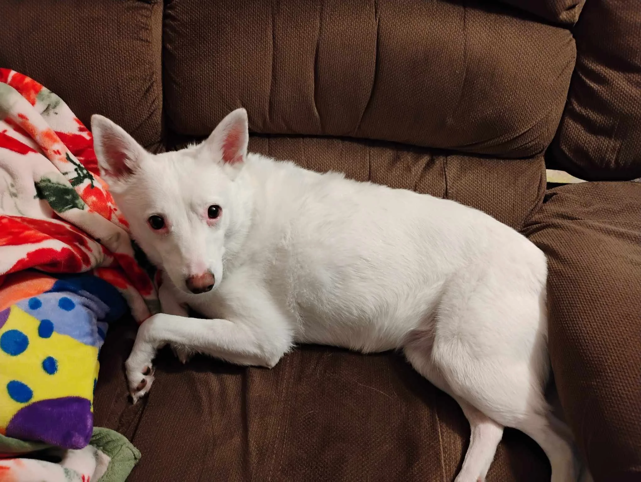 This is my dog. Her name is Happy Girl. She is a Red Heeler Mix. She loves her ball and pillows.